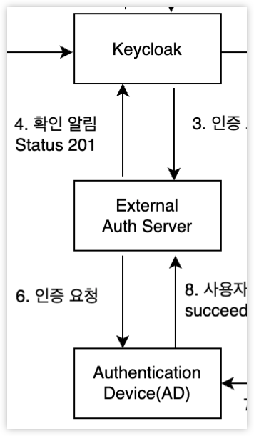 서버에서 polling을 해야하는 상황이 생겼다. 아키텍처상 여러 서버들이 통신을 주고 받는데, 일렬로 구성된 3가지 서버에서 중간 서버의 코드를 작성해야하는 상황이였다. 구체적으로는 keycloak과 중간서버가 사용자의 인증을 기다려야하는 상태였다(아래 그림에서 External Auth Server).