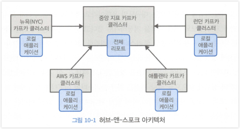 - 지역 및 중앙 클러스터: 각 도시의 데이터센터에 클러스터를 갖고, 각 데이터들을 중앙 클러스터에 미러링하여 비즈니스적인 분석을 해야하는 경우 활용