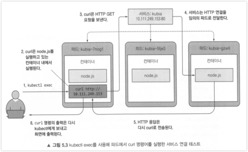 $ kubectl exec kubia-7nogl -- curl -5 <http://10.111.249.153>