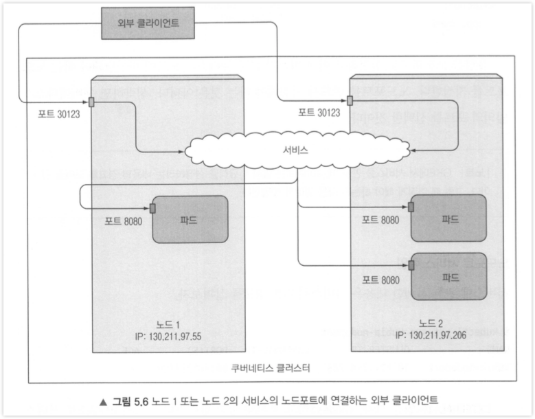 - 쿠버네티스는 노드에 파드를 스케줄링한 후 파드가 시작되기 바로 전에 파드의 IP주소를 할당함. 따라서 클라이언트는 서버인 파드의 IP 주소를 미리 알 수 없음