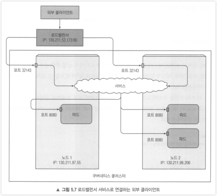 - 노드포트 대신 서비스 유형을 로드밸런서로 설정하기만 하면 됨