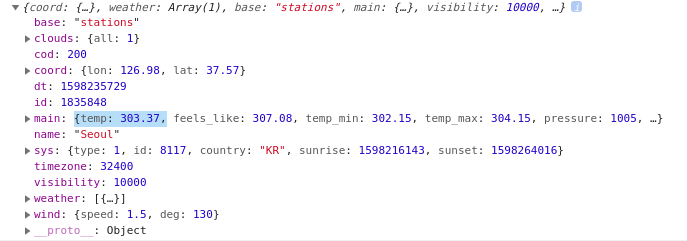fetch('https://api.openweathermap.org/data/2.5/weather?q=Seoul&appid=f1fa608c21e31c8d795c823346b69942')