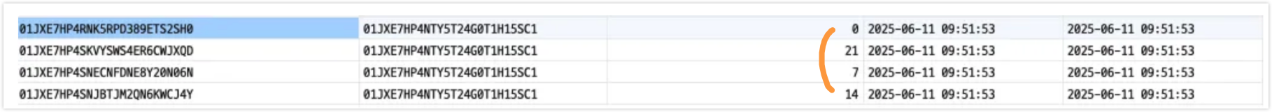table의 ID순서로 정렬을 했음에도 3번째 컬럼이 [0,7,14,21]순이 아니게 조회되는 현상