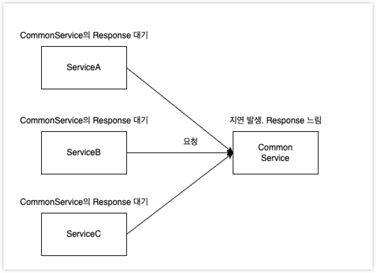 여러 서비스들을 운영하는 환경에서 Gateway처럼 공통으로 쓰는 서버가 있다고 가정해보면, 이 공통으로 쓰는 서버에서 지연이 발생했을 때 해당 지연이 모든 서비들로 전파되는 문제가 발생할 수 있다.