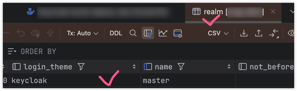DB의 값을 직접 수정하는 것은 금기 사항이다. 그러나 realm의 테마 값을 변경하는 것은 부작용이 없기 때문에(kc 26.0.1 버전 기준), 아래와 같이 realm Table에서 login_theme 값을 기본 테마인 keycloak으로 변경해주면 된다.
