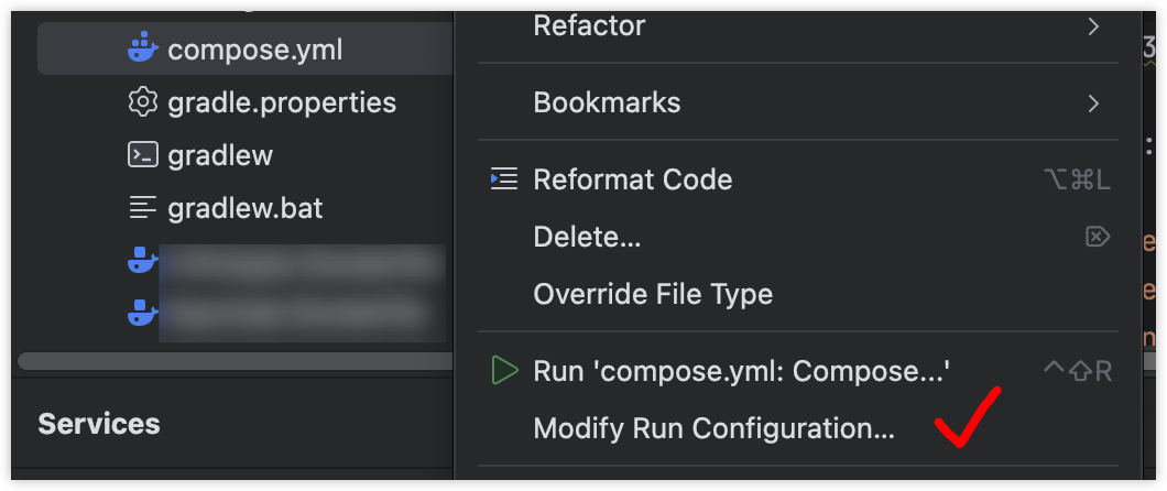 사용 중인 Dockerfile 또는 compose 파일을 우클릭하여, Modify Run Configuration에 들어간다.