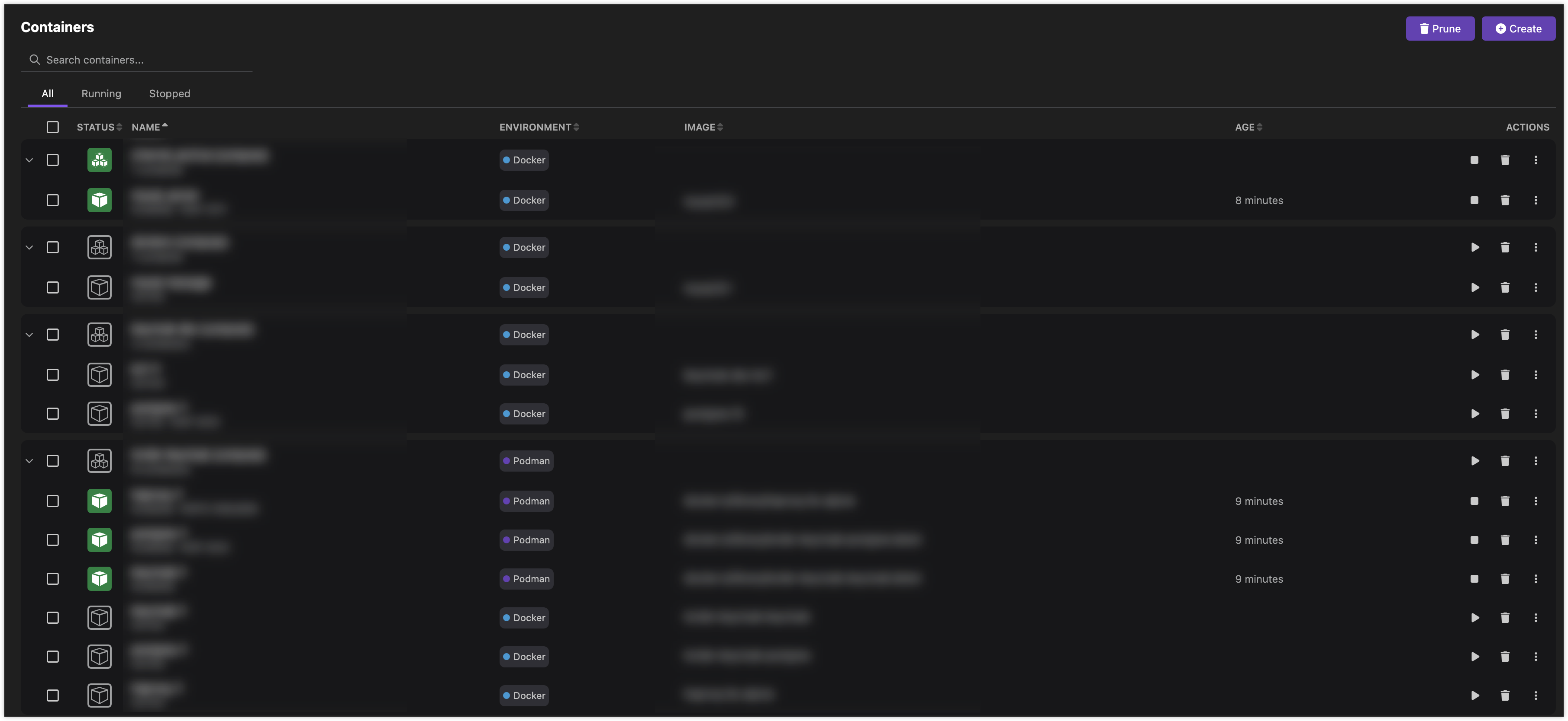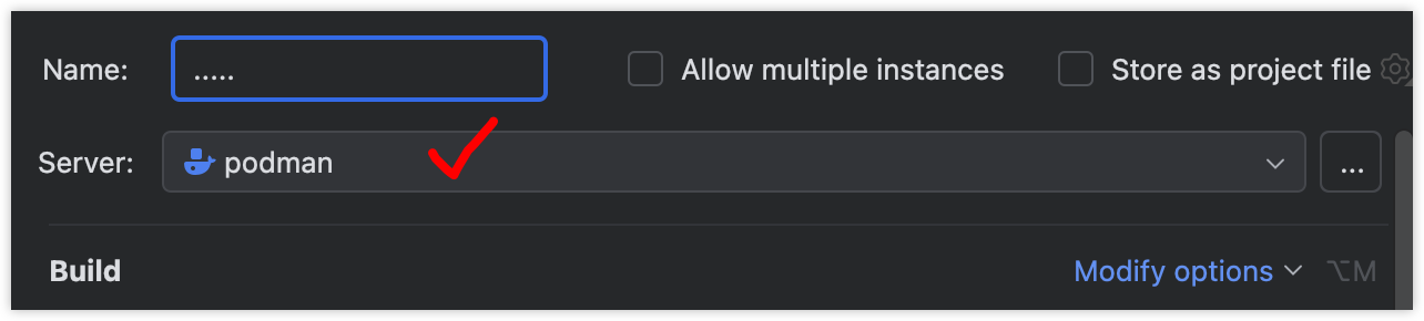 아래와 같이 Server를 podman으로 설정하고, 파일을 실행하면 podman으로 실행된다.