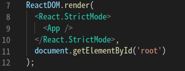 영상에서 콘솔에 constructor와 render가 두 번 불려오는 것을 확인할 수 있다. 이것은 index.js 파일의 <React.StrictMode> 컴포넌트 부분 때문에 발생하는 것이다. 예기치 못한 버그에 대응하기 위해서 이런 모드를 기본적으로 실행하게 되어있는데, 이 부분을 삭제하면 constructor와 render가 한번씩만 실행되게 된다.