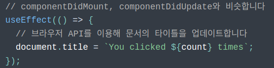 useEffect(() => { }, [ ] )의 형태를 띄고 있다.