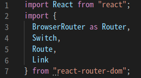 react-router-dom에서 BrowserRouter, Switch, Route, Link 컴포넌트를 불러와서 사용한다.