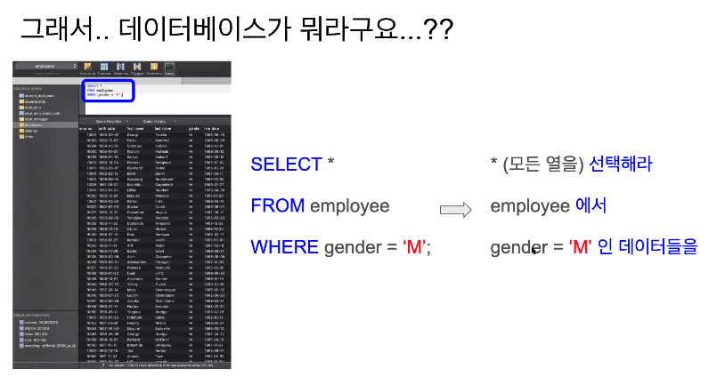 데이터베이스에 쿼리를 보내면 원하는 데이터를 뽑아올 수 있다.