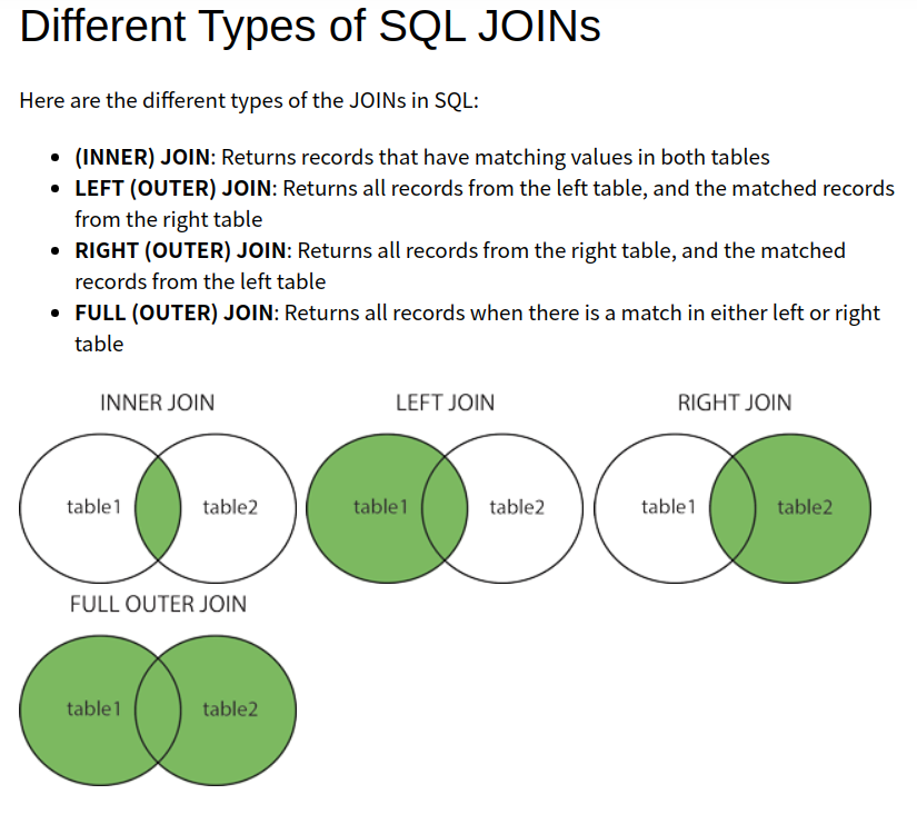 INNER JOIN이 가장 많이 쓰이지만, 그 외 다른 type의 join도 사용할 수 있다.