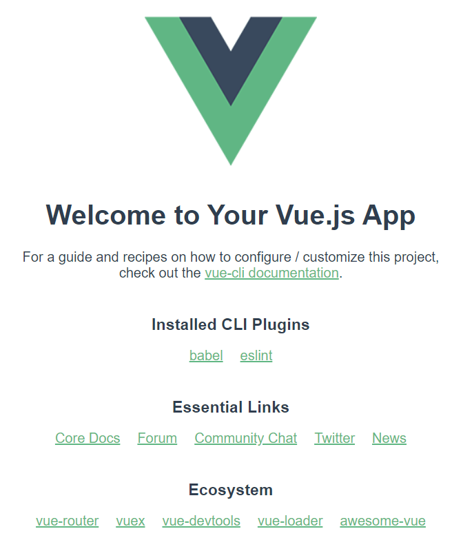 각 IDE(VSCODE 또는 IntelliJ)에서의 터미널 창에서 npm run serve 명령어를 입력하고, localhost:8080 사이트로 들어가면 Welcom page가 출력됨을 확인할 수 있다.
