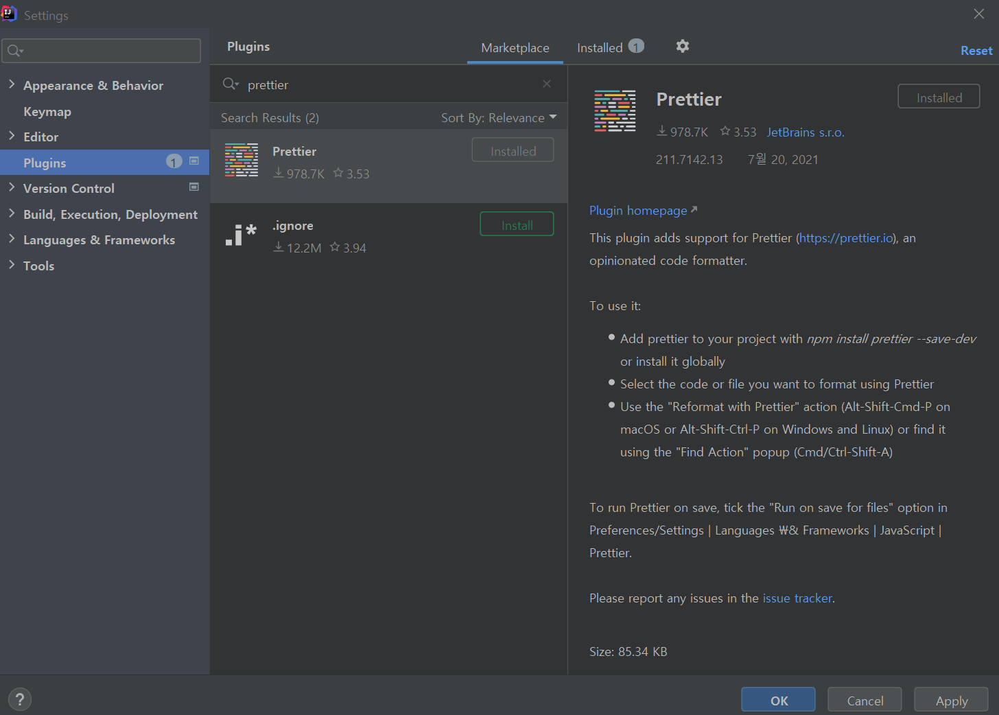 Prettier도 설치하자. Prettier는 줄 간격 등을 맞춰줘서 다른 개발자와 같이 개발 시에 양식을 맞춰줄 수 있다.