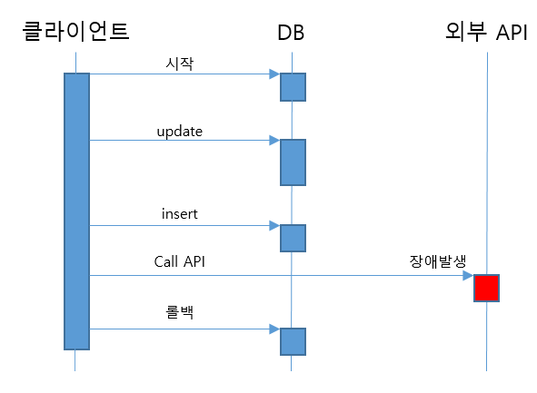 트랜잭션이 update, insert, 외부 API 호출로 이루어진 상황에서, 외부 API 호출이 실패하여 롤백을 한다면 내부적인 롤백에는 문제가 없을 것이다.