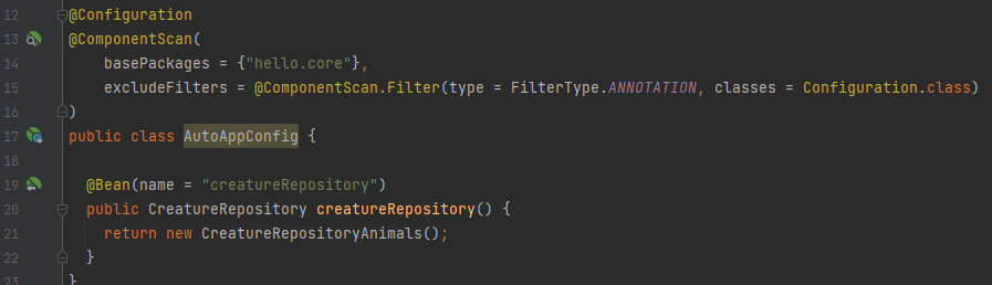수동으로 creatureRepository를 @Bean으로 등록하고 테스트 해본다. CreatureRepository는 @Component 애노테이션에 의해서 자동 스캔도 동시에 되는 상황이다.