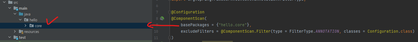 - excludeFilters : 컴포넌트 스캔에서 제외할 대상을 지정
