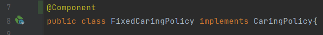 각 구현체는 @Component 어노테이션을 통해 @ComponentScan에 의해 Scan되며, CaringPolicy 인터페이스를 implements로 상속받는다.