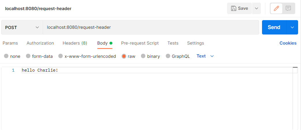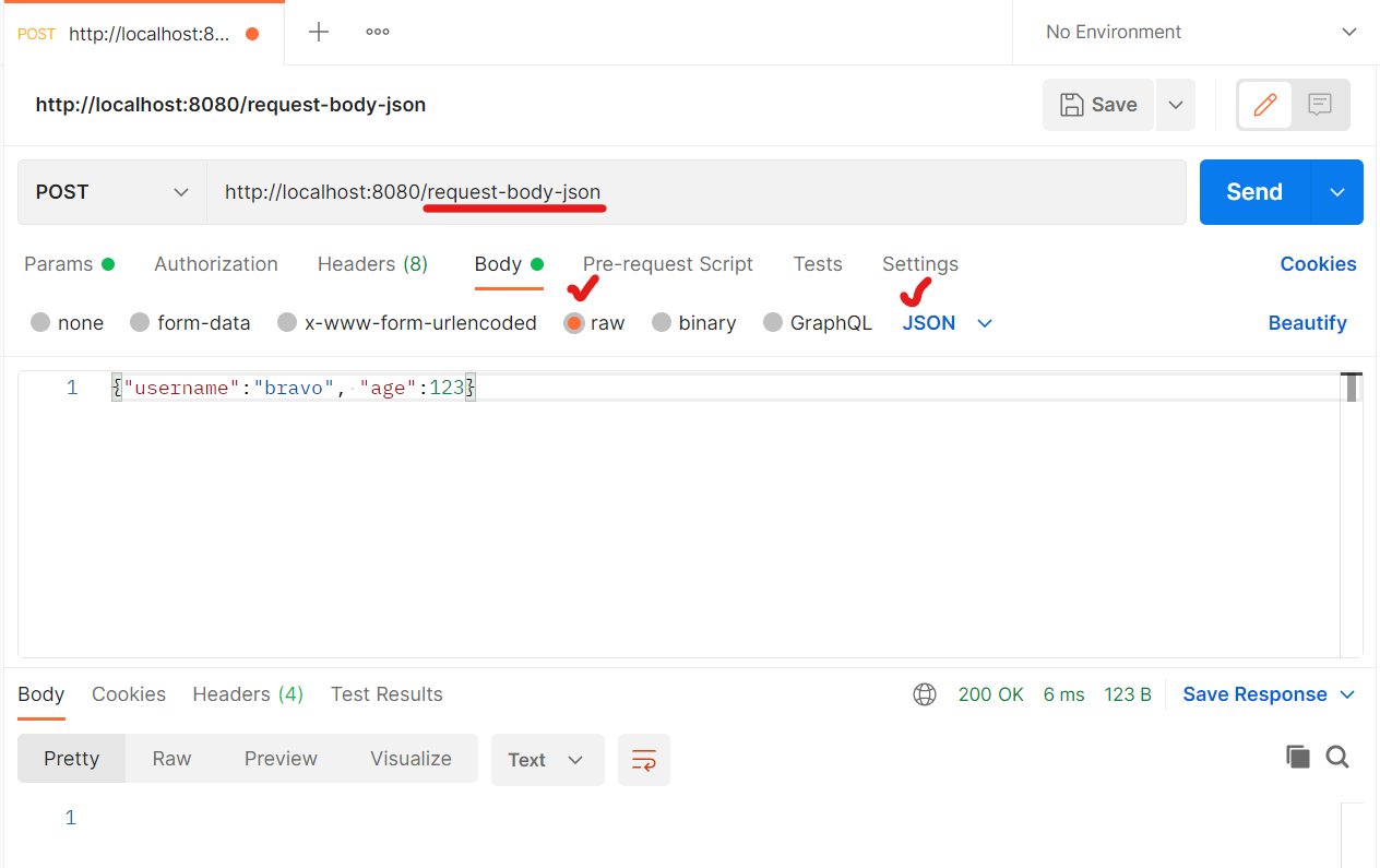 그리고 나서 postman을 이용해서 JSON 형식의 body가 담긴 HTTP 요청을 전송해보자.