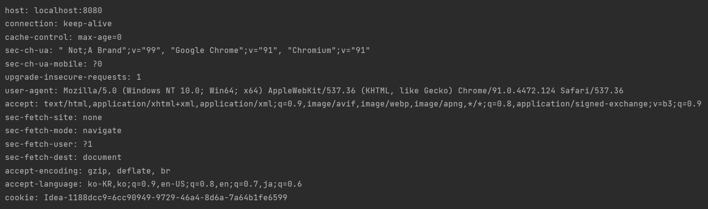 Header에 담긴 모든 정보가 순차적으로 출력되는 것을 확인할 수 있다.