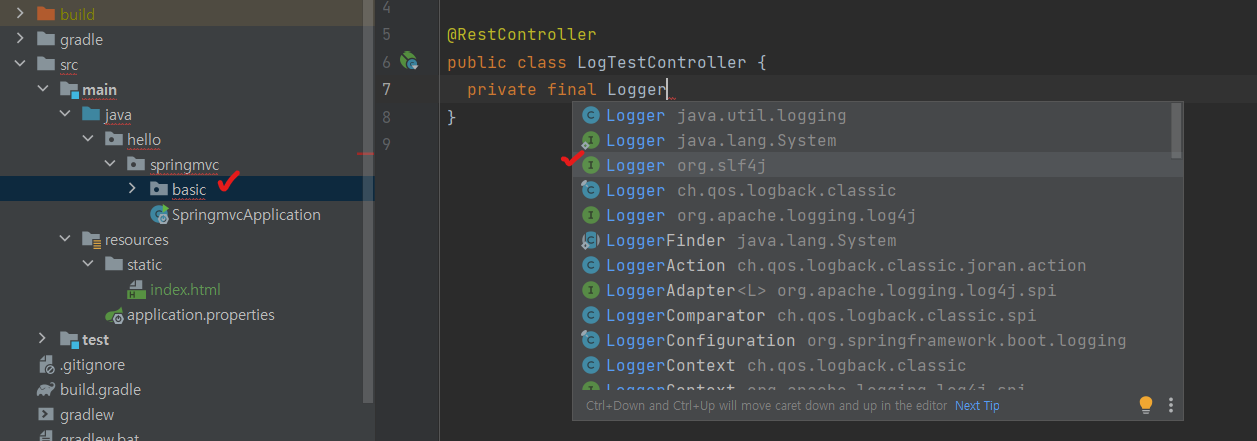 @RestController 어노테이션을 붙여주고, org.slf4j의 Logger를 주입받는다. 아래 코드와 함께 하나씩 내용을 살펴보자.