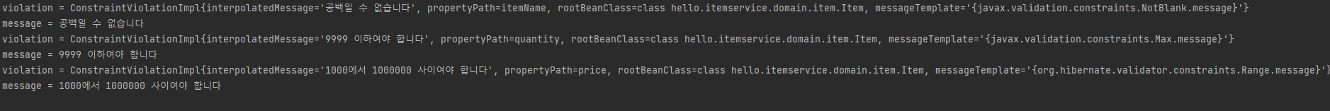 System.out.println("message = " + violation.getMessage());