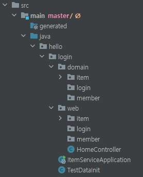 강의의 login 프로젝트를 가져와서 학습한다. 패키지 구조를 살펴보면, 크게 domain과 web으로 나눠져 있는 것을 볼 수 있다.