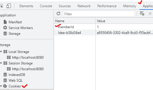 Application 탭의 Cookies 메뉴에서도 확인할 수 있다.