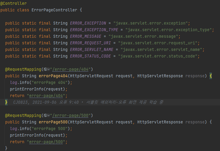| [스프링 웹MVC-2] 14. 예외 - 서블릿 오류 페이지 (0) | 2021.09.06 |