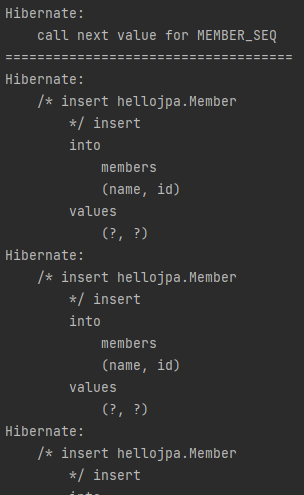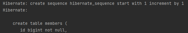 실습 예제와 같이 H2 Database로 dialect를 지정하면 아래와 같이 sequence ... 으로 표현된다.