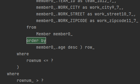 위 예제에서 생성된 쿼리문의 일부는 아래와 같다. limit ? offset ? 을 주도록 되어있는데, setFirstResult(0)으로 하여 딱 처음부터 시작하게 되면 offset 자체가 작성되지 않는다.