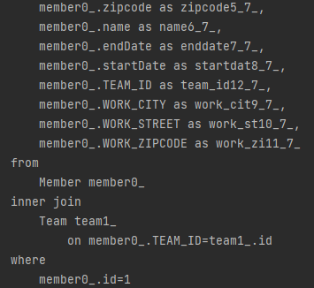 String query= "select m from Member m inner join m.team t where m.id = 1";