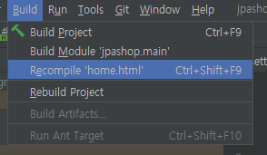 이렇게하면 템플릿엔진에서 참조하는 html 페이지 내용을 바꿨을 때, 서버를 재시작하지 않고 Build -> recompile [파일명] 으로 템플릿의 내용을 바로 변경 적용할 수 있다.
