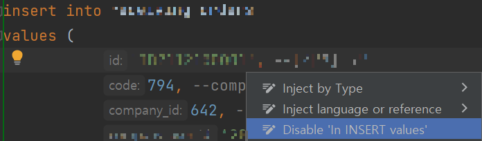 insert into문에서 굳이 컬럼/필드명을 다 표시할 필요없이 values 부분에서 [Alt + Enter]로 'Enable In INSERT values'를 선택하면 intelliJ가 각 컬럼명을 표시해준다.