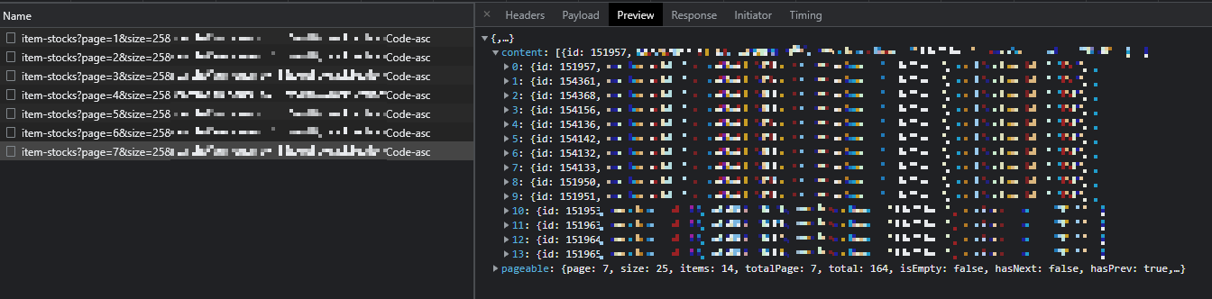문제가 발생했을 때, 현상 분석을 정확히 해야하는 것을 알고 있다. 그런데 현상 분석을 하는 Tool도 매우 중요하다는 것을 배웠다. 그림 1에서 볼 수 있듯이 총 데이터 개수가 164개이고, response body가 JSON 형태로 표기된다. Sorting을 했을 때와 안했을 때 이 164개의 데이터를 비교해서 데이터의 누락이나 중복이 없는지 봐야했는데 나는 이걸 각 데이터의 id값을 엑셀에 수기로 입력하는 방식으로 했다. 처음부터 이런것은 아니고, JSON을 파싱하는 자바 객체를 찾아봤는데, 현장에 문제 해결책을 빨리 전달해줘야하는 상황이라 공부하고 적용할 시간이 없었다. 그래서 아쉬움이 컸다.