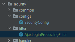 Ajax를 통해 인증을 처리하는 필터를 만든다. security 패키지 안에 filter 패키지를 만들고, AjaxLoginProcessingFilter를 추가한다.