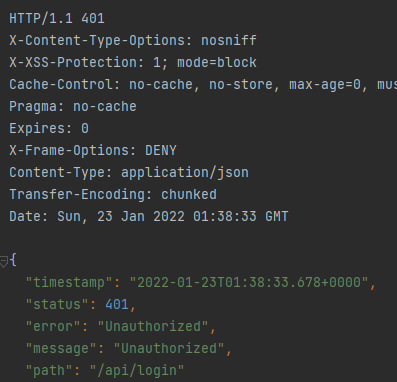 그럼 Services 탭에서 아래와 같이 401 응답값이 나온다. 이것은 AuthenticationManager로 Token 값은 전달했는데, AuthenticationManager가 인증 처리를 위임할 Provider가 없기 때문이다. 다시 말해 AjaxAuthenticationToken을 처리할 수 있는 Provider가 없기 때문에 인증 에러가 발생하는 것이다.