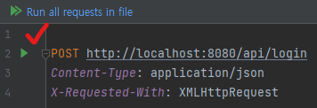 postman으로 Header 값 등을 설정하고 보내도 되지만, 강의에서는 intelliJ에서 ajax 객체를 만들어서 바로 요청을 보내는 법을 소개한다. java 디렉터리 아래에 ajax.http 파일을 만들고 아래와 같이 작성한다. method, url을 작성하고 header 값 및 body값을 http 스펙대로 전달한다.