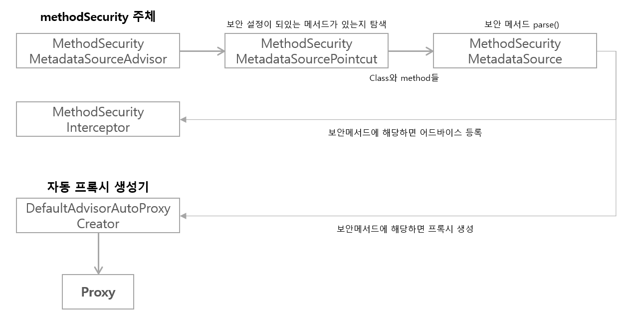 1. 전체 빈을 검사하면서 보안 설정 메서드 탐색(보안 어노테이션이 있는 메서드)
