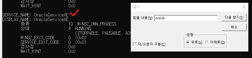 win + R을 눌러 cmd를 실행하고, "sc query" 명령어를 실행했을 때 OracleServiceXE가 보이면 설치가 완료된 것이다. 참고로 sc query 명령어는 windows에서 사용되는 service들의 목록을 보여준다.
