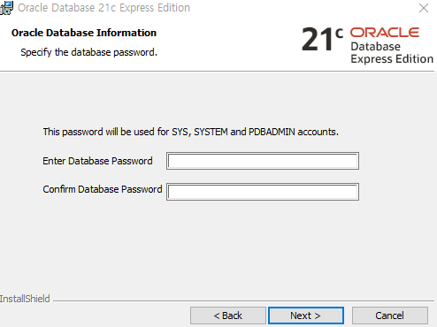 설치 중 계정에 대한 비밀번호를 설정해야한다. 일단 비밀번호만 넣으면 되는데, 보통 기억하기 쉽게 "1234"를 입력한다. 나중에 변경이 가능하니 그냥 1234로 해도 된다.
