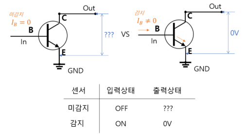입력에 어떤 값도 입력되지 않았을 때, 트랜지스터는 연결되지 않았으므로 끊어져있는 Out과 GND간에 전압차가 발생한다. 외부 Noise에 의한 것이든, 다른 연결된 회로에 의해 전압이 있든 0V는 아닌 명확하지 않은 전압차가 출력 상태가 된다. 명확하지 않은 상태값을 가지고 시스템을 구성할 수는 없다. 1V든 10V든 정해진 값에 도달하면 현재 시스템이 OFF라는 것을 표현해줘야 하기 때문이다.