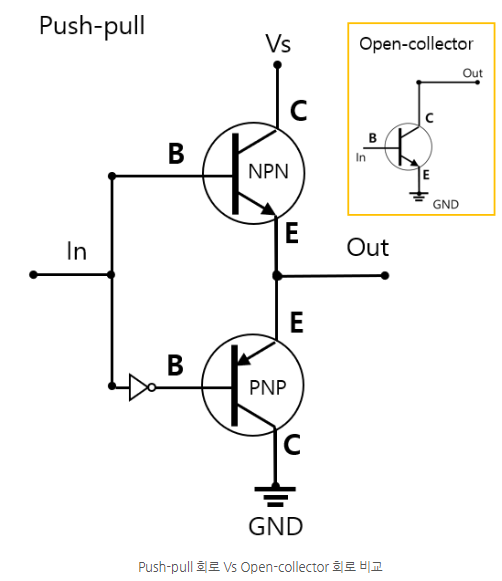 그리고 책 내용과 다르게 대표적인 출력 형태인 Open Collector, Push-Pull 출력, totem pole 출력에 대해서만 다룰 것이다.