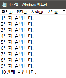 with open("C:/Temp/새파일.txt", "w", encoding="UTF-8") as file: #with 구문 적용