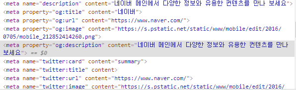 특히, 어떤 meta태그는 다음, 네이버, 구글 등 특정 플랫폼에서만 쓰이도록 되어있기도 하다.
