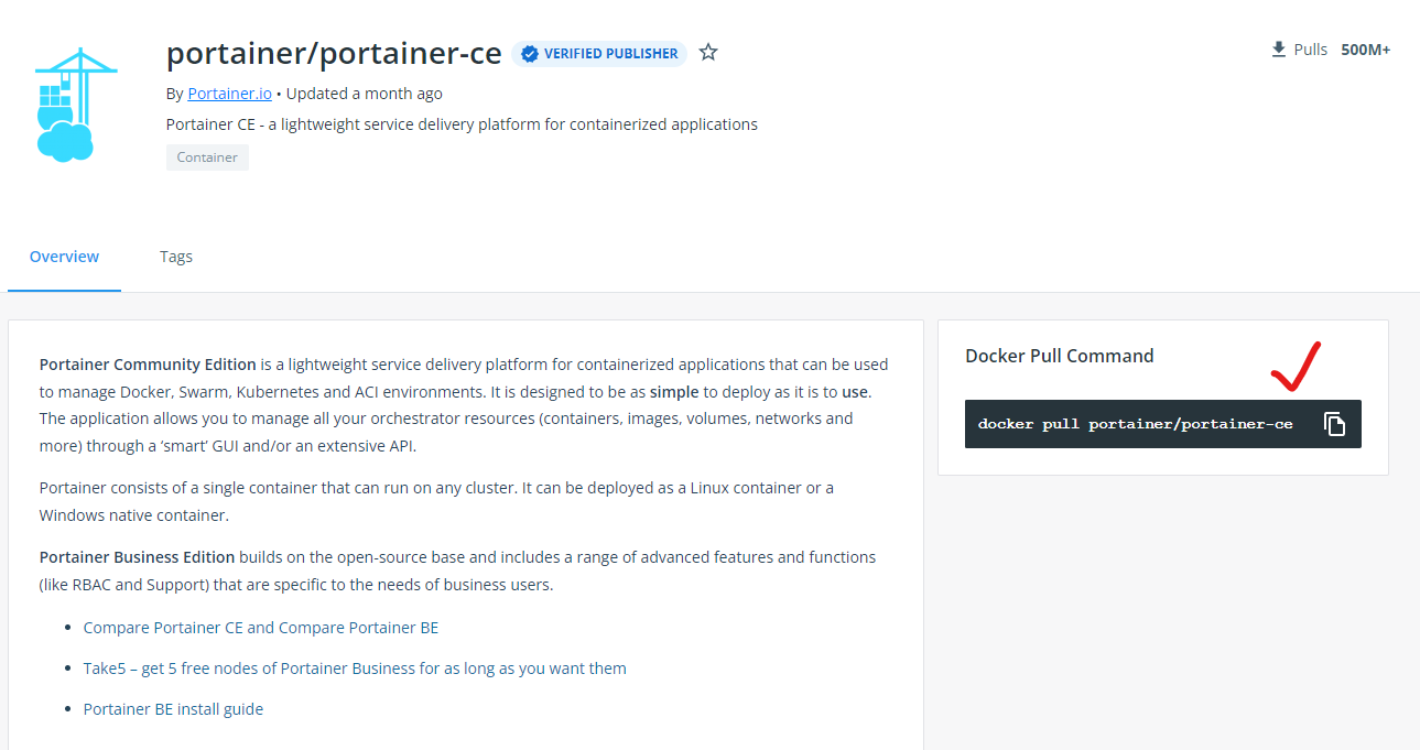 맨 마지막 부분에 portainer/portainer-ce로 변경했다.(링크에서는 portainer-be:lastest)