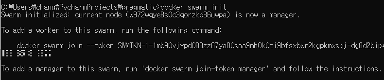 Swarm이 성공적으로 initalized 되고, 해당 node가 manager가 되었음을 알려준다. node들에는 manager node가 있고, 그 외 일반 node가 있다. swarm을 최초로 init한 node가 manager가 되는 것이다.