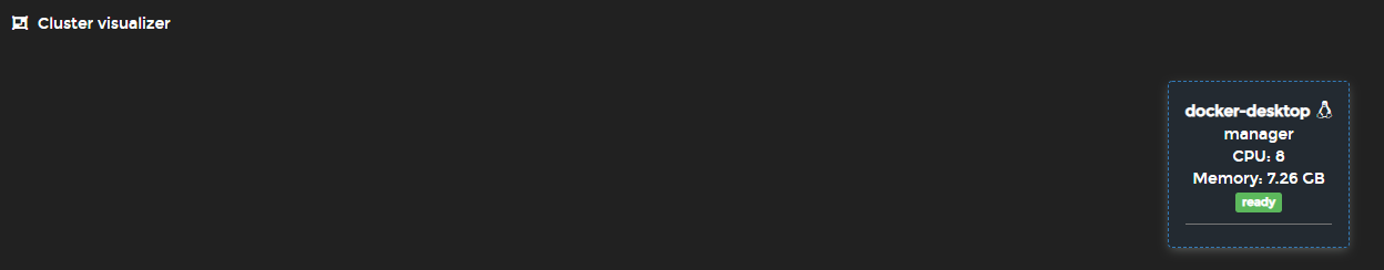 Swarm에 들어가보면 docker desktop이라는 이름, manager 권한으로 swarm이 생성된 것을 볼 수 있다.