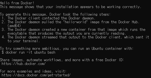 강의대로 그냥 docker 라고 입력해봐도 설치 여부를 알 수 있다.