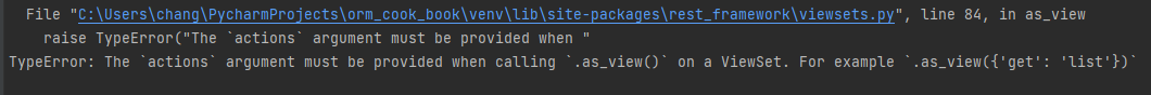 actions가 .as_view() 괄호 안에 dict 형태로 반드시 정의되어야 한다. 아래처럼 작성해보자.